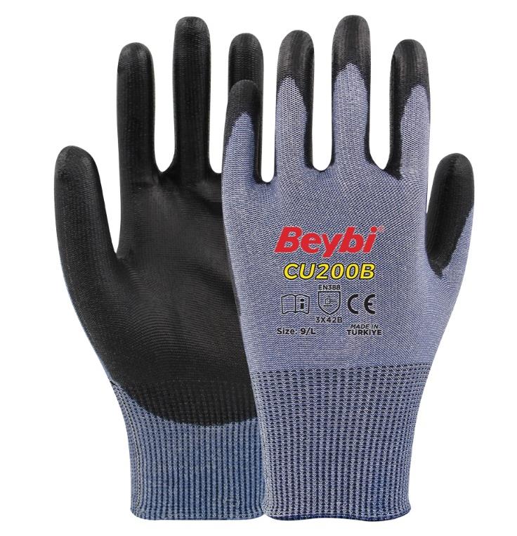 Beybi CU200 B PU Kaplı Polietilen Kesilmeye Dirençli Örme Eldiven